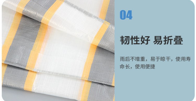 金包銀色PE防水篷布品質源于細節:布料柔軟光滑,柔軟易折疊,專業水織機編織;加厚加密編織,抗撕,防水和保溫性能更好。